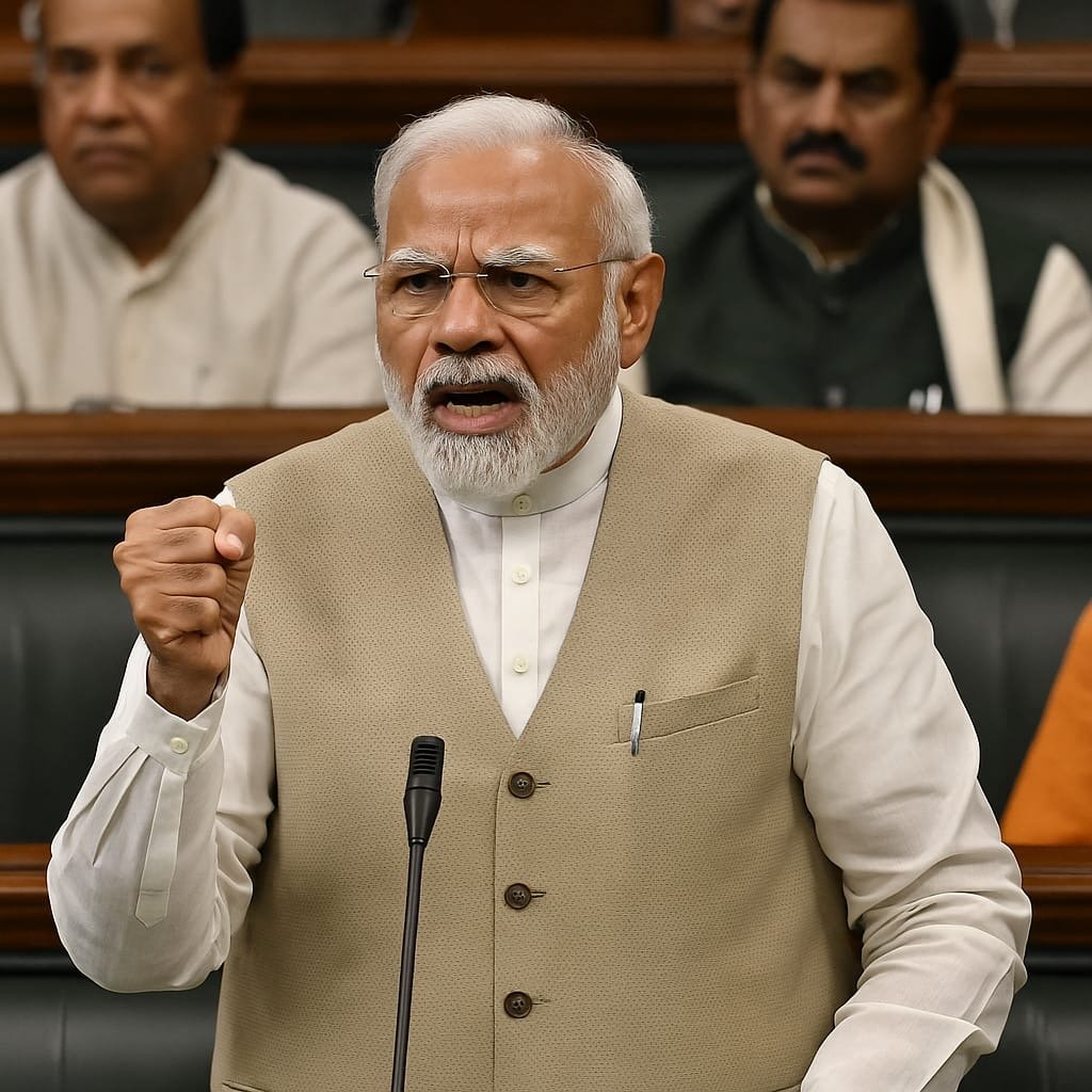 प्रधानमंत्री नरेंद्र मोदी ने आज लोकसभा में अपने तीखे और प्रभावशाली भाषण से विपक्ष पर जोरदार हमला बोला और भारत की राष्ट्रीय सुरक्षा नीति को स्पष्ट रूप से दुनिया के सामने रखा। ‘ऑपरेशन सिंदूर’ के संदर्भ में दिए गए इस बयान में मोदी ने कहा कि भारत अब चुप बैठने वाला देश नहीं रहा, और जब भी देश की संप्रभुता को ललकारा गया, हमने दोगुने साहस और सटीक जवाब से उसका मुँहतोड़ उत्तर दिया।