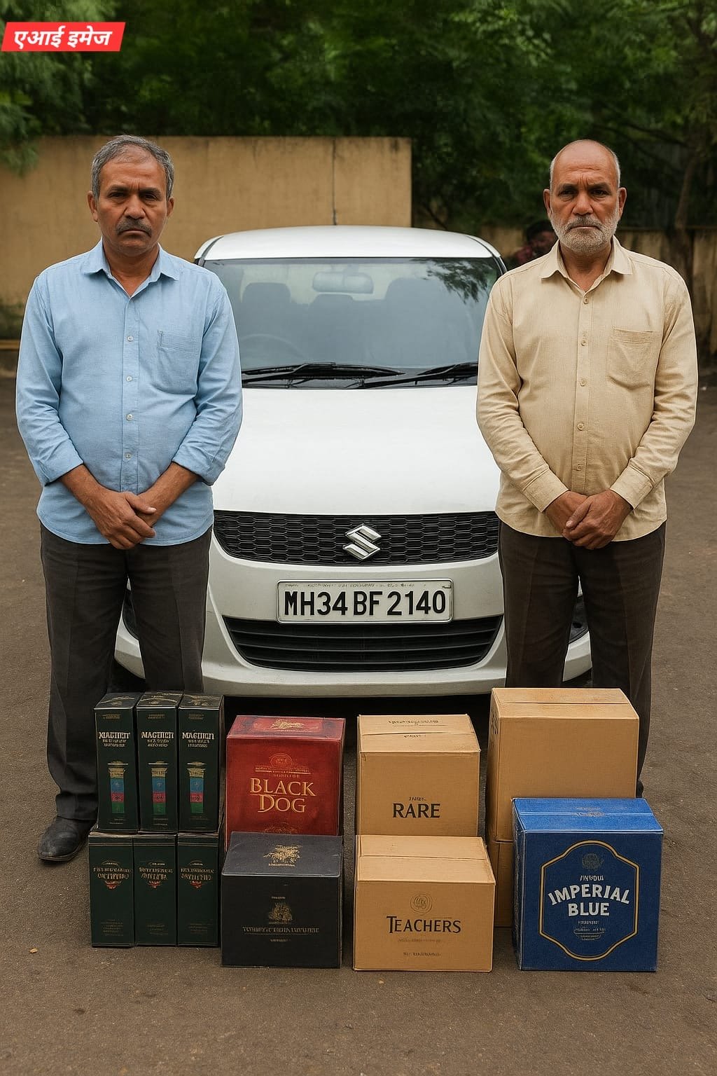 पांढऱ्या रंगाच्या इर्टिगा (क्र. MH34BF2140) मधून दोन इसम अवैधरित्या विदेशी दारूची वाहतूक करत असल्याची गुप्त माहिती पोलिसांना मिळाली होती. तत्काळ सापळा रचून कारवाई करण्यात आली.