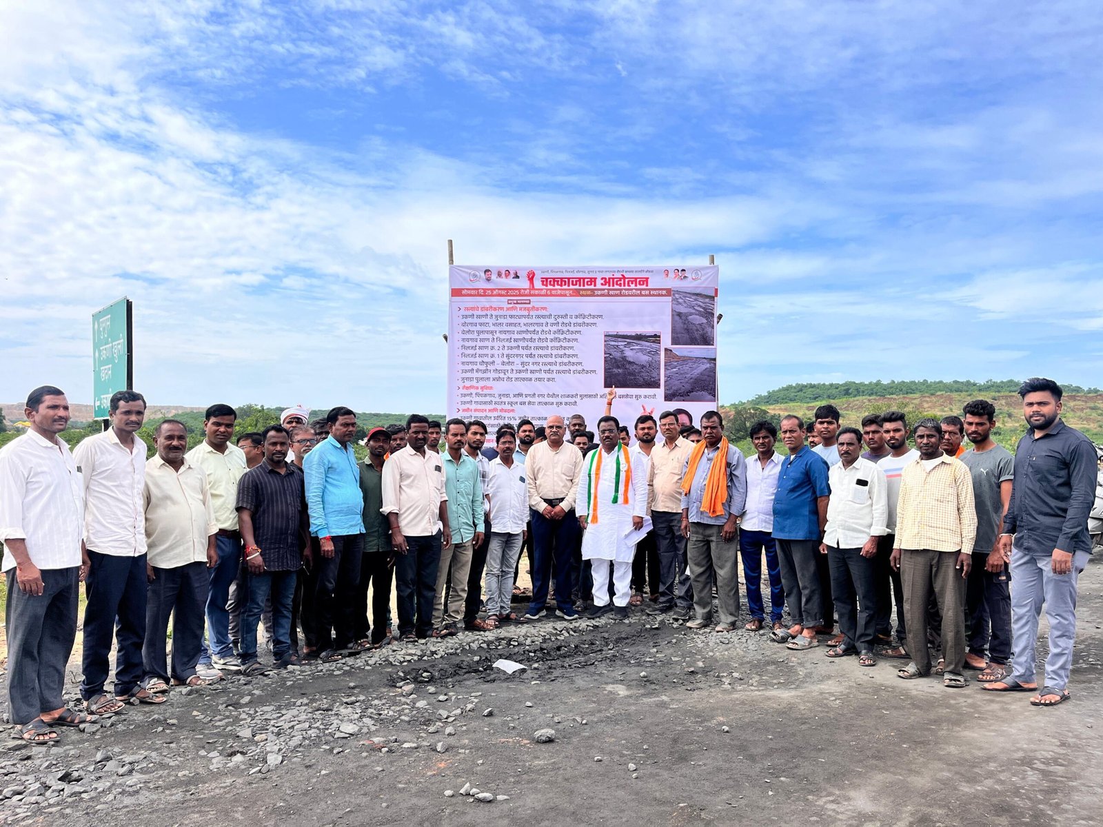 वणी खाण परिसरातील रस्त्यांची दुरवस्था व इतर मूलभूत समस्या याकडे प्रशासनाचे लक्ष वेधण्यासाठी सोमवारी (25 ऑगस्ट) काँग्रेस पक्षाने उकणी खाण रोडवरील बसस्टॉप जवळ विराट चक्काजाम आंदोलन छेडले. पहाटे 6 वाजता सुरू झालेले हे आंदोलन तब्बल साडेतीन तास चालले.