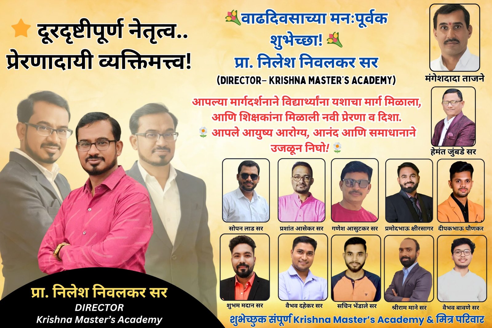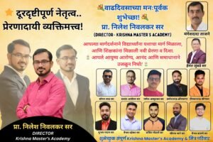 рд╢рд┐рдХреНрд╖рдг рдХреНрд╖реЗрддреНрд░рд╛рдд рдЖрдкрд▓реНрдпрд╛ рдХрд╛рд░реНрдпрдХреБрд╢рд▓рддреЗрдиреЗ рдЖрдгрд┐ рджреВрд░рджреГрд╖реНрдЯреАрдиреЗ рдПрдХ рд╡реЗрдЧрд│реА рдУрд│рдЦ рдирд┐рд░реНрдорд╛рдг рдХрд░рдгрд╛рд░реЗ рдХреГрд╖реНрдгрд╛ рдорд╛рд╕реНрдЯрд░реНрд╕ рдЕрдХреЕрдбрдореАрдЪреЗ рд╕рдВрдЪрд╛рд▓рдХ рдкреНрд░рд╛. рдирд┐рд▓реЗрд╢ рдирд┐рд╡рд▓рдХрд░ рд╕рд░ рдпрд╛рдВрдЪрд╛ рд╡рд╛рдврджрд┐рд╡рд╕ рдЕрддреНрдпрдВрдд рдЖрдирдВрджрд╛рдд рдЖрдгрд┐ рдЙрддреНрд╕рд╛рд╣рд╛рдд рд╕рд╛рдЬрд░рд╛ рдХрд░рдгреНрдпрд╛рдд рдЖрд▓рд╛.