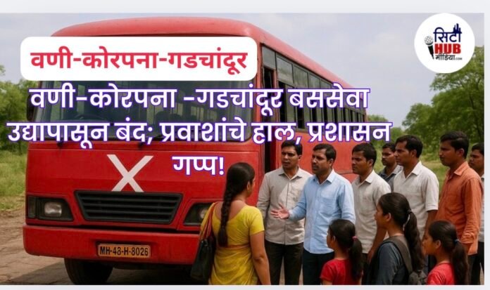 वणी ते कोरपना आणि गडचांदूर दरम्यान धावणारी राज्य परिवहन महामंडळाची (एस.टी.) बससेवा उद्यापासून बंद होणार असल्याची माहिती मिळाली असून, या निर्णयामुळे प्रवाश्यांसह विद्यार्थ्यांनाही मोठा फटका बसणार आहे.