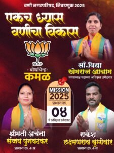 नगरपालिका निवडणुकीच्या पार्श्वभूमीवर प्रभाग क्रमांक चार मधून भाजपचे उमेदवार राकेश बुग्गेवार हे एक प्रभावी, कार्यक्षम आणि जनसंपर्क दांडगा असलेले उमेदवार म्हणून समोर येत आहेत. मागील कार्यकाळात त्यांनी आपल्या प्रभागात अनेक ठोस व लोकाभिमुख विकासकामांची अंमलबजावणी केली. भूमिगत नाल्यांची बांधणी, रस्त्यांचे काँक्रिटीकरण, वॉटर एटीएमची उभारणी—ज्याद्वारे नागरिकांना केवळ पाच रुपयांत स्वच्छ पिण्याचे पाणी उपलब्ध होते—ही त्यांच्या कार्यशैलीची ठळक उदाहरणे आहेत. त्याचबरोबर वणीतील अत्यंत उत्कृष्ट ‘नाना-नानी पार्क’ हेही त्यांच्या कार्यकाळातच उभारले गेले.