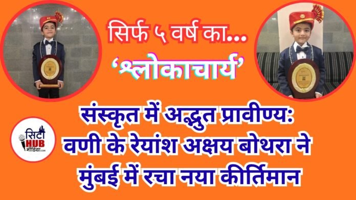 असाधारण स्मरणशक्ति, विलक्षण प्रतिभा और संस्कृत भाषा पर आश्चर्यजनक पकड़ का परिचय देते हुए वणी के नन्हे बालक रेयांश अक्षय बोथरा (आयु 5 वर्ष) ने राष्ट्रीय स्तर पर अपनी विशिष्ट पहचान स्थापित की है।