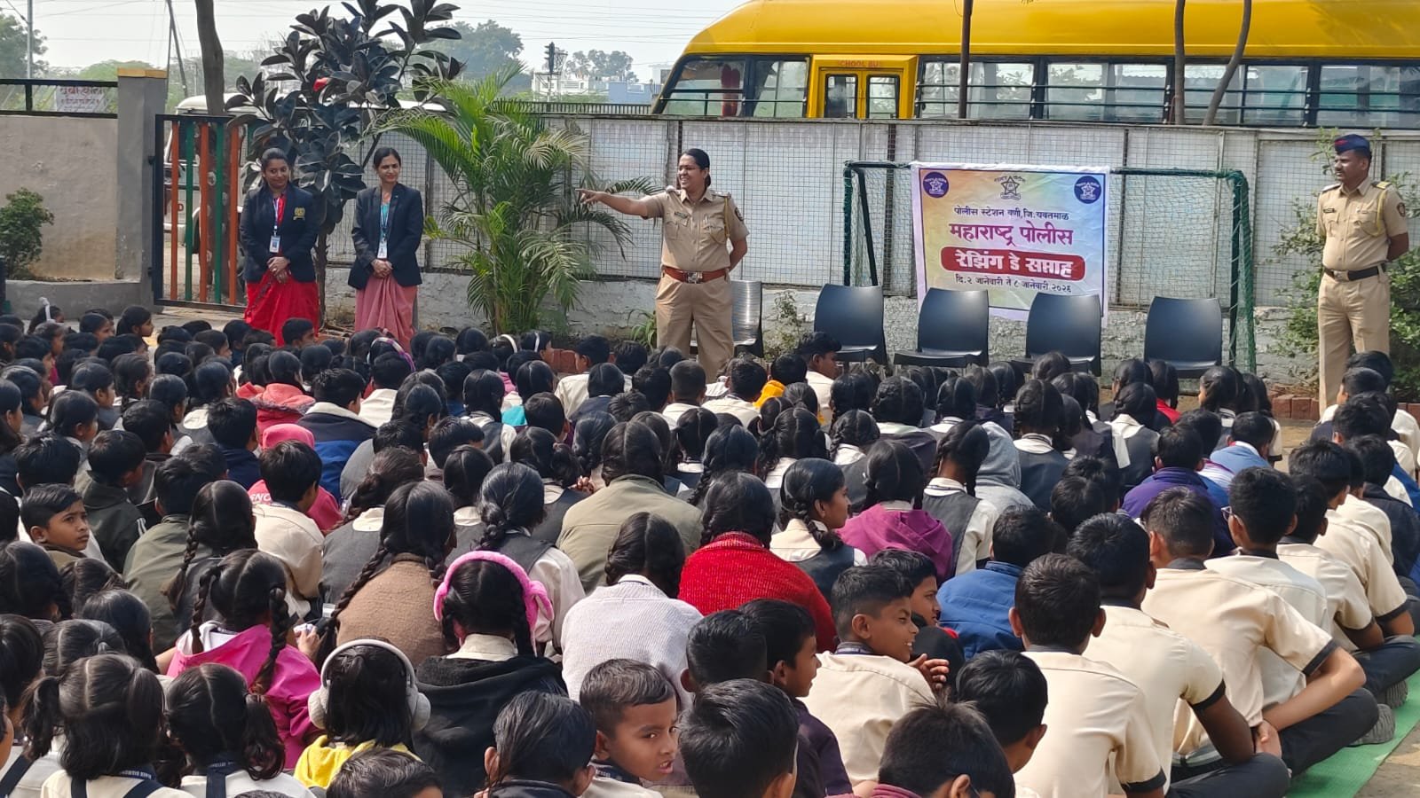 पोलीस वर्धापन दिनाच्या निमित्ताने वणी पोलीस स्टेशन, जिल्हा यवतमाळ यांच्या वतीने समाजप्रबोधन व कायदेविषयक जनजागृतीचा व्यापक उपक्रम राबविण्यात आला. या उपक्रमाच्या माध्यमातून विद्यार्थ्यांमध्ये कायद्याबाबत जागरूकता निर्माण करण्यावर विशेष भर देण्यात आला.