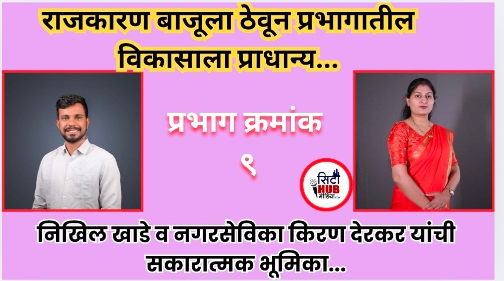 निवडणूक संपल्यानंतर राजकीय मतभेद बाजूला ठेवत प्रभागातील जनतेच्या प्रश्नांना प्राधान्य देण्याचा सकारात्मक संदेश प्रभाग क्रमांक ९ मधून पुढे आला आहे. शिवसेनेचे निखिल खाडे व प्रभाग ९ च्या विद्यमान नगरसेविका उबाठाच्या किरण देरकर यांनी एकत्र येत नागरिकांच्या समस्यांवर तत्काळ तोडगा काढण्यासाठी पुढाकार घेतला आहे.