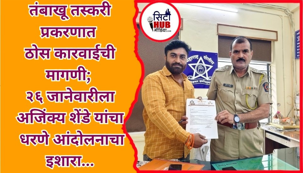 तंबाखू तस्करी प्रकरणात ठोस कारवाईची मागणी; २६ जानेवारीला धरणे आंदोलनाचा इशारा वणीतील तंबाखू तस्करी प्रकरणात कारवाई रखडली; अजिंक्य शेंडे यांचे पोलीस अधीक्षकांना कडक स्मरणपत्र…