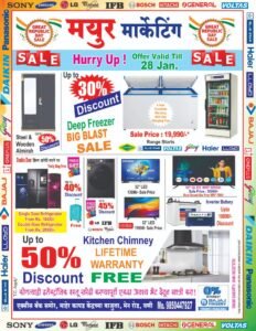 ही विशेष सवलत योजना २५ ते २८ जानेवारीपर्यंत मर्यादित कालावधीसाठी असून, वणी व परिसरातील नागरिकांनी या संधीचा लाभ घ्यावा, असे आवाहन मयूर मार्केटिंगकडून करण्यात आले आहे.