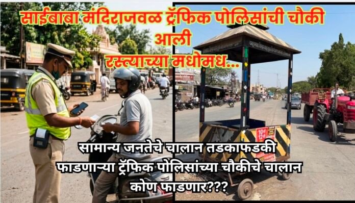 शहरात वाहतुकीचे नियम मोडले की वाहतूक पोलीस तत्काळ सक्रिय होतात. एखाद्याची गाडी पांढऱ्या रेषेबाहेर आली किंवा पार्किंग झोन सोडून उभी राहिली, तर ५००० रुपयांपर्यंतचा दंड आकारला जातो. मात्र, आता याच नियमांची अंमलबजावणी करणाऱ्या वाहतूक विभागाचा स्वतःचा ‘कारभार’ चक्क रस्त्याच्या मधोमध आला असून, त्यामुळे अपघाताची टांगती तलवार निर्माण झाली आहे.