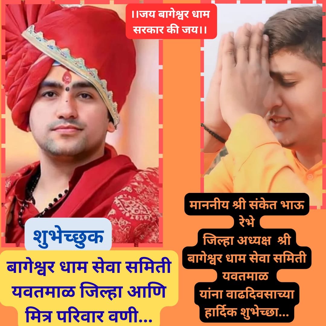जय श्रीकृष्ण जन्माष्टमी समितीचे सक्रिय सदस्य,श्री बागेश्वर धाम सेवा समिती यवतमाळ चे जिल्हा अध्यक्ष माननीय संकेतजी रेभे यांचा आज वाढदिवस,लहान वयातच स्वतः ला अध्यात्मिक क्षेत्रात वाहून घेणारे संकेतभाऊ रेभे गोरगरिबांना नेहमी मदत करतात व कुठलेही धार्मिक आयोजन असो त्यामध्ये अत्यंत मनोभावे सहभागी होतात…