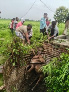 मात्र, उज्वला निब्रड यांनी ही माहिती बजरंग दलाच्या कार्यकर्त्यांपर्यंत पोहचवली व गौरक्षणासाठी नेहमी तत्पर असलेल्या बजरंग दलाच्या कार्यकर्ते घटनास्थळी दाखल झाले आणि सदर गायीला मोठ्या प्रयत्नाने सुखरूप रित्या विहिरीबाहेर काढून निष्पाप मुक्या जनावराला जीवनदान दिले व गौरक्षणासाठी तत्पर बजरंग दलाच्या नावाला सार्थक केले…